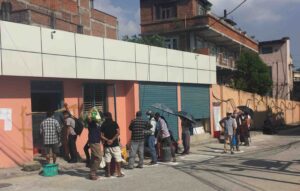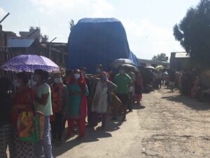 न त कुनै भौतिक दूरी न अन्य सुरक्षाको मापदण्ड, कोरोनाको जोखिम मोलेर जम्मा ४३५ को सामान (२ केजी चिनी, दुई केजी नून, एक केजी आँटा र एक लिटर तेल ) का लागि मानिसहरु विहान ११ बजेदेखि ३ बजेसम्म तातो घामको पर्वाह नगरी लाममा बसेका थिए । फितलो व्यवस्थापनका वीच सूचनामा भने बमोजिम सामान नदिएको भन्दै सर्वसाधारणले आक्रोस पोखेका थिए । हर्नुहोस् विलसहित सप्रमाण: