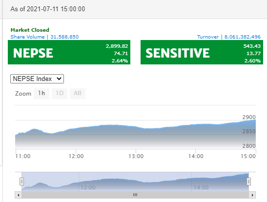 आइतबार २२५ वटा कम्पनीको ३ करोड १५ लाख ८८ हजार ८५० कित्ता शेयर किनबेच हुँदा ८ अर्ब ६ करोड १३ लाख ८२ हजार रुपैयाँको शेयर कारोबार भएको छ ।