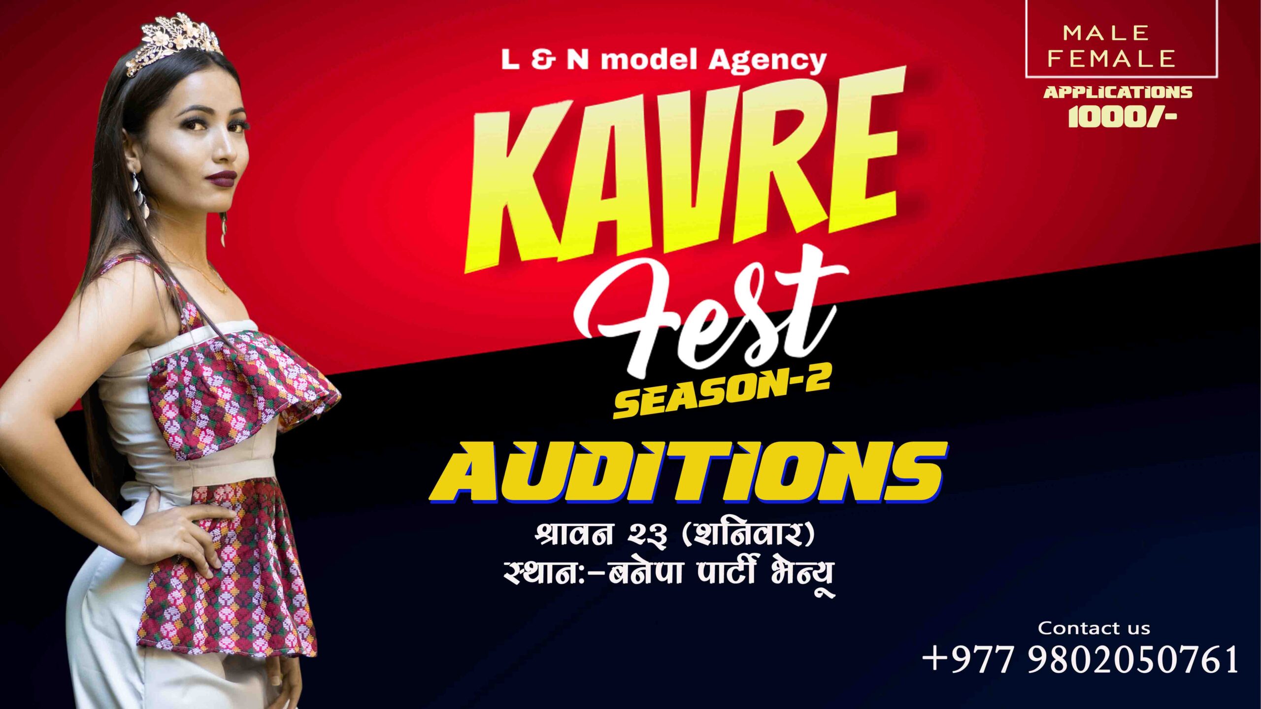 काभ्रे : बिगत २ वर्षदेखि रोकिएर रहेको “काभ्रे फेस्ट -सिजन २” को अडिसन यहि आउदो श्रावन २३ गते शनिबार को दिन बनेपा पार्टी भेन्यु & रेस्टुरेन्टमा Covid -19 स्वास्थ्य सम्बन्धि सम्पूर्ण मापदण्ड को पालना गरि आयोजना हुने भनि जानकारी गराइएको छ ।