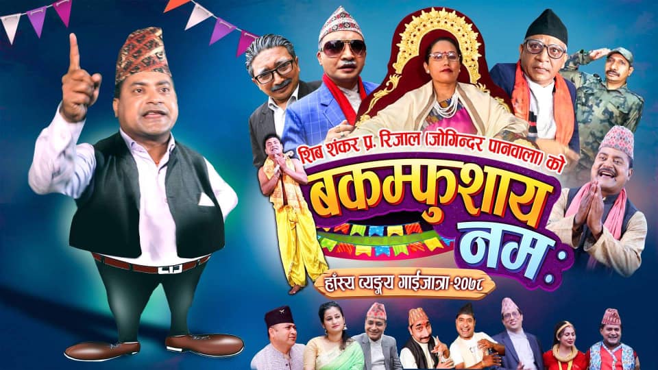 काठमाडौँ : ‘गाईजात्रा’ हास्य र ब्यङ्ग्यको पर्वको रुपमा लिने गरिन्छ । यो दिनलाई लक्षित गर्दै बिभिन्न हाँस्य ब्यङ्ग्य सामाग्री बजारमा भित्रिने गर्दछन् । आगामी भदौ ७ गते परेको गाइजात्रालाई लक्षित गर्दै लोकप्रिय हास्य कलाकार शिव शंकर रिजाल ‘जोगिन्दर’ले यो वर्षका लागि आफ्नो गाइजात्रे कमेडी कोसेली ‘ओम बकम्फुसाय नम’ ल्याएका छन् ।