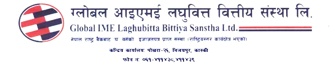 पोखरा : पोखरा महानगरपालिका २६ स्थित विजयपुरमा केन्द्रीय कार्यालय रहेको ग्लोबल आईएमई लघुवित्त वित्तीय संस्था लिमिटेडले ७ वटा शाखा कार्यालय बिस्तार गरेको छ । साबिक स्पर्स लघुवित्त वित्तीय संस्था लिमिटेडलाई प्राप्ति गरे पश्चात १ वटा शाखा मर्ज गरेको यस वित्तीय संस्थाले ५१ वटा जिल्लामा १०१ वटा शाखा कार्यालयहरुबाट आफ्ना ग्राहक सदस्यहरुलाई सुबिधा दिइरहेकोमा बांकेको ढकेरी शाखा, सप्तरीको छिन्नमस्ता शाखा, रोल्पाको त्रिवेणी शाखा, रुपन्देहीको बनगाई शाखा, ओखलढुङ्गाको लिखु शाखा, उदयपुरको चुहाडे शाखा तथा झापाको धुलाबारी शाखा गरी ७ वटा शाखा कार्यालय थप गरी १०८ वटा शाखा कार्यालयहरुबाट थप सेवा प्रदान गर्न सुरु गरिसकेको छ । साथै, यस संस्थाले आफ्ना सदस्यहरुलाई प्रविधिमैत्री सेवा दिने उद्देश्यले आईएमई–पे तथा ई–सेवासंग समन्वय गरी आफ्ना सदस्यहरुसंग आर्थिक कारोबार गर्न शुरु गरेको छ ।