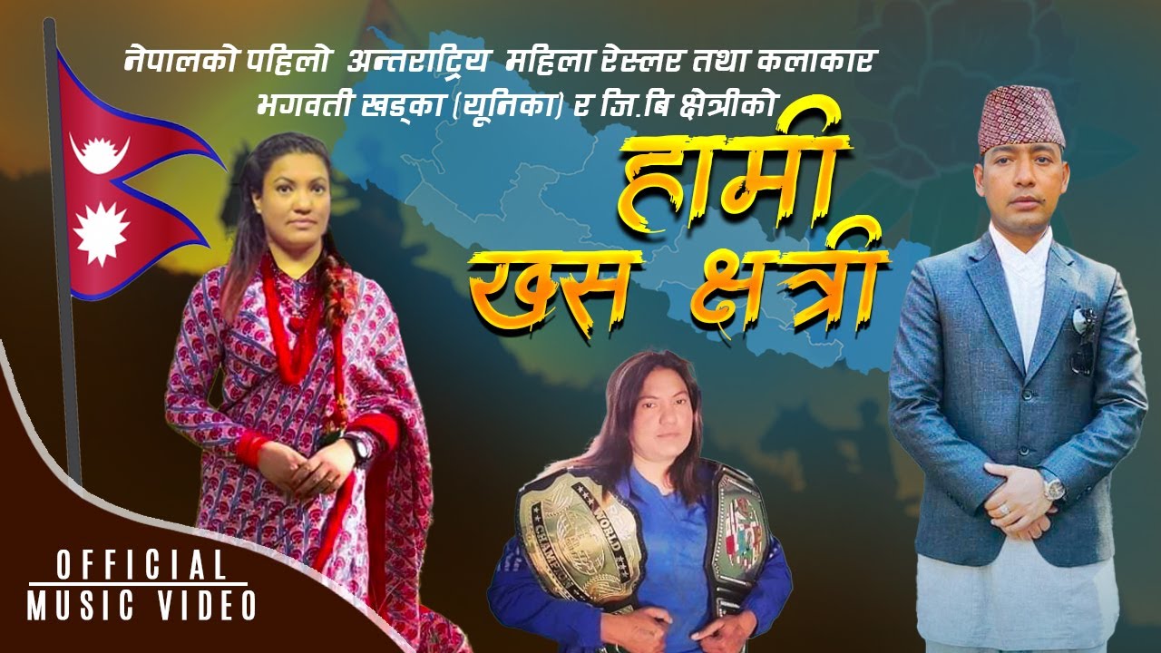 काठमाण्डौं : नेपालको पहिलो अन्तराष्ट्रिय महिला रेस्लर तथा कलाकार भगवती खड्का (यूनिका)को आवाजमा रहेको ’ हामी खस क्षेत्री ’ गीतको भिडियो सार्वजनिक भएको छ । नेपालको एकिकरणमा क्षेत्री समुदायले पुयाएको योगदानलाई गीतमा समावेश गरिएको छ । जी. बि. क्षेत्री को शब्द तथा विकाश चौधरीको संगीत संयोजन गीतमा रहेको छ । गीतमा सन्जय हमालको एरेन्ज तथा विर बहादुर थारुको सम्पादन रहेको छ ।