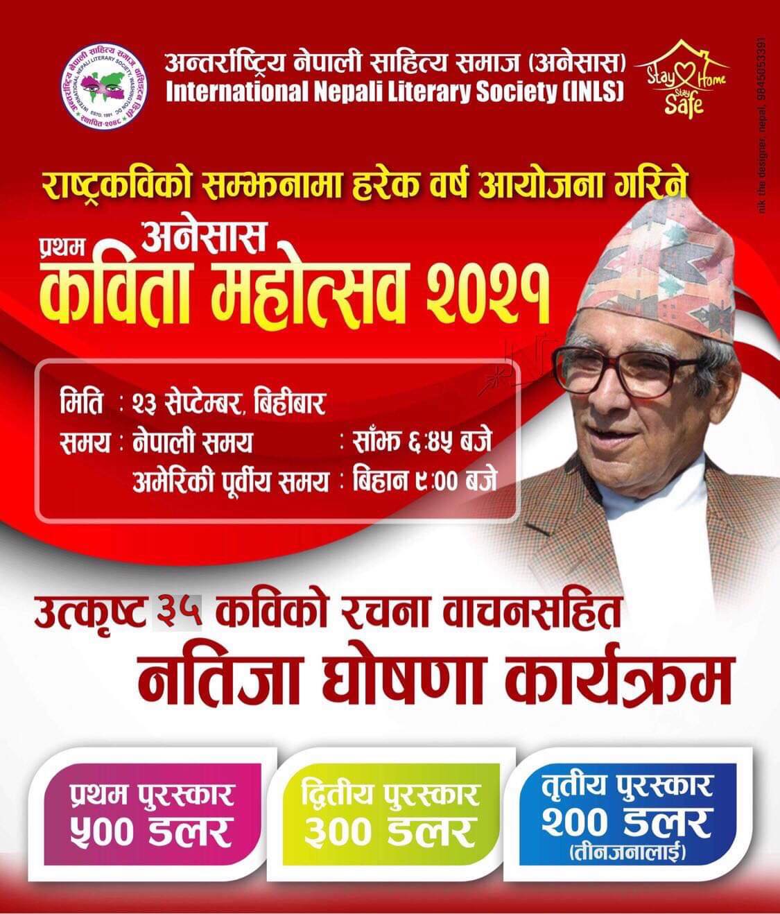 अनेसासले प्रत्येक वर्ष प्रतियोगितात्मक कविता महोत्सवको आयोजना गर्ने घोषणासहित पहिलो पटक गर्न लागेको यो कविता महोत्सवमा विश्वभरका तीन सय एक कविले सहभागिता जनाएका छन् । ती मध्ये तीनजना निर्णायकको मतको आधारमा ३५ जना वाचनका लागि छनोट भएका हुन् ।