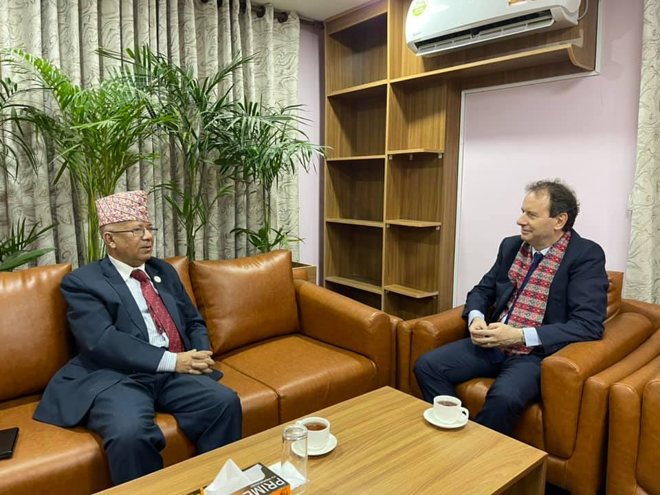 काठमाडौं, २६ असोज नेकपा (एकीकृत समाजवादी)का अध्यक्ष एवं नेपाल-फ्रान्स पार्लियामेन्टरी कमिटीका संयोजक माधवकुमार नेपाल र नेपालका लागि फ्रान्सका नवनियुक्त राजदूत गिल्स बोर्बाओबिच भेटवार्ता भएको छ । भेटमा राजदूत बोर्बाओले नेपाल आउन पाउॅदा खुसी लागेको बताउॅदै आफ्नो कार्यकालमा नेपाल र फ्रान्स बीचको सम्बन्धलाई उचाइँमा पुर्याउने बताएकी हुन् ।