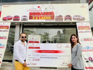 काठमाडौं : नेपालका लागि होण्डा कारको आधिकारिक बिक्रेता स्याकार ट्रेडिङ्ग कम्पनी प्रा.लिले नेपालीहरुको महान चाड दशैं, तिहार र छठलाई लक्ष्ति गर्दै ल्याएको “होण्डाको फेस्टिभ बोनान्जा” योजना अन्तर्गत पहिलो विजेता लक्की मार्फत घोषित गरिएको छ । बुटवलको ड्राइभवे व्हिलस् प्रा.लिबाट WRV-SVMT खरिद गरी संजय नेपालले हरेक हप्ता हुने लक्की ड्र मार्फत ३ लाख ५० हजार रुपैयाँ नगद उपहार प्राप्त गरेका छन् ।
