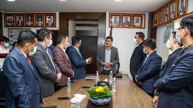 काठमाडौं : नाडाका अध्यक्ष कृष्णप्रसाद दुलालको नेतृत्वमा गएको ८ सदसिय प्रतिनिधिमण्डलले माननीय अर्थमन्त्री जनार्दन शर्मासंग आइतबार मन्त्रालयमा भेट गरेको नाडाले जनाएको छ ।
