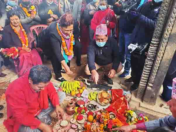 ललितपुर, २९ कात्तिक : ऊर्जा, जलस्रोत तथा सिँचाइमन्त्री पम्फा भुसालले ललितपुर महानगरपालिका वडा नं ८ स्थित बालकुमारी मन्दिर पुनःनिर्माण कार्यको शिलान्यास गर्नुभएको छ । आज बिहान उहाँले मन्दिर पुनःनिर्माणको आरम्भ गर्नुभएको हो ।