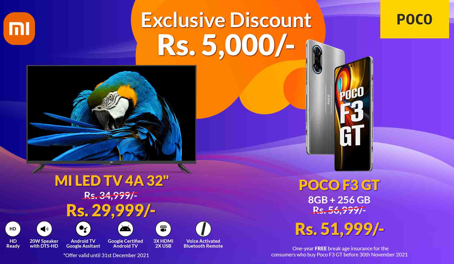 पहिला ५६,९९९ मुल्य भएको पोको एफ ३ जीटीलाई कम्पनीले ५१,९९९ मा र ३४,९९९– मुल्य भएका मी टिभिलाई २९,९९९– मा दिने निर्णय गरेको छ । पोको एफ ३ जीटीमा एक वर्षको बीमा पनि रहेको छ जुन आधिकारिक बिक्री केन्द्रहरुबाट खरिद गर्दा उपलब्ध हुनेछ । यो योजना सिमीत अवधिको लागि मात्र लागु हुनेछ ।