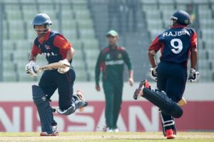 नेपालको बलिंगमा गुलसन झा , तिलक राज भण्डारी र आदील अन्सारी ले समान एक विकेट लिए।