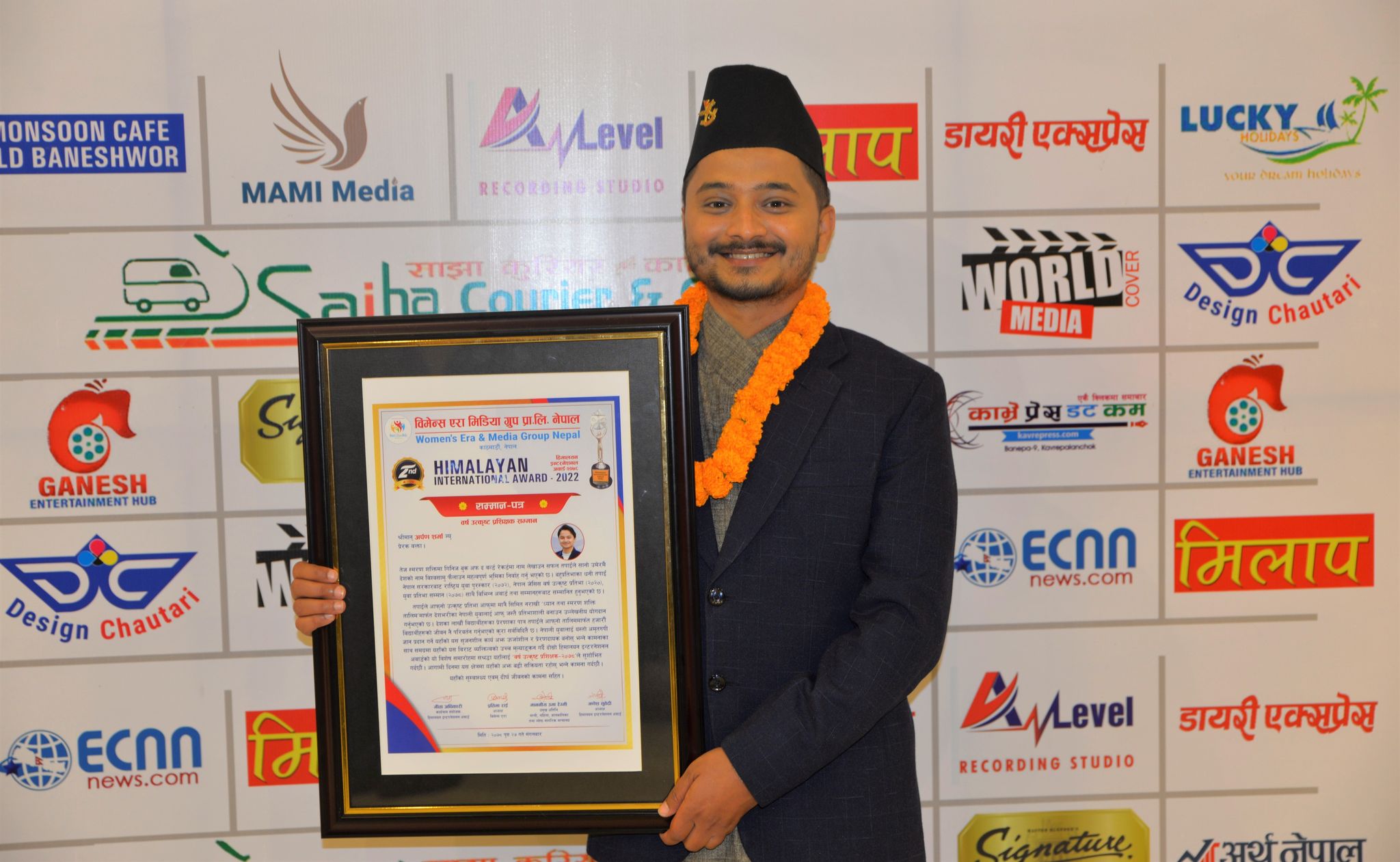 काठमाडौँ : अर्पण शर्मा “वर्ष उत्कृष्ट प्रशिक्षक २०७८” (बेस्ट ट्रेनर अफ द इअर २०७८) द्वारा सम्मानित भएका छन् । विमेन्स एरा मिडिया ग्रुप प्रा.लि को आयोजनामा काठमाडौं नयाँ बानेश्वरको एवेरेस्ट होटलमा आयोजित हिमालयन इन्टरनेसनल अवार्ड – २०७८ मा माननीय महिला, बालबालिका तथा ज्येष्ठ नागरिक मंत्री उमा रेग्मी ज्यूले अर्पण शर्मालाई “वर्ष उत्कृष्ट प्रशिक्षक २०७८” ले सम्मानित गर्नु भएको हो ।