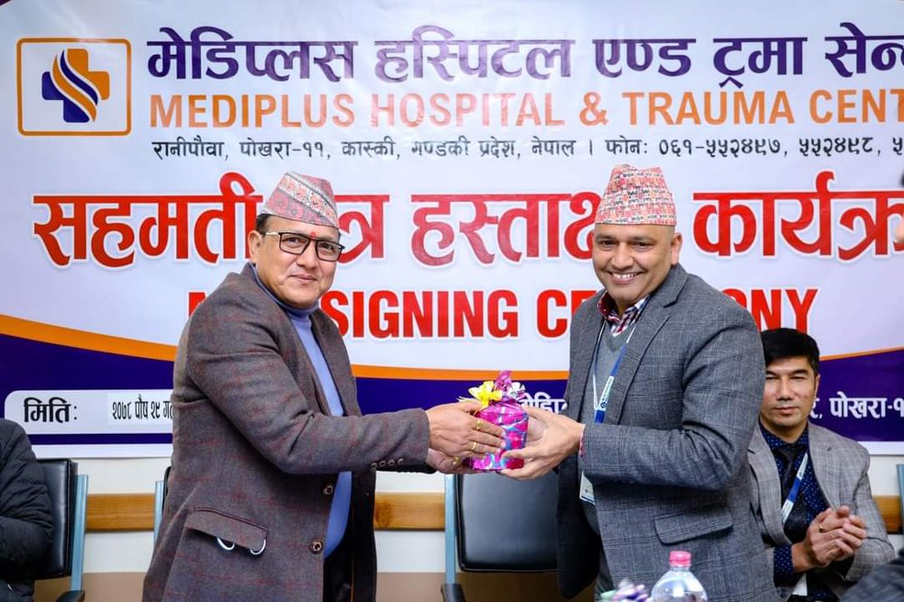 सम्झौता पत्रमा अस्पतालका अध्यक्ष रमेशकुमार थापा र बैंकका गण्डकी प्रदेश प्रमुख ईश्वरी प्रसाद जोशीले हस्ताक्षर गरेका छन् ।