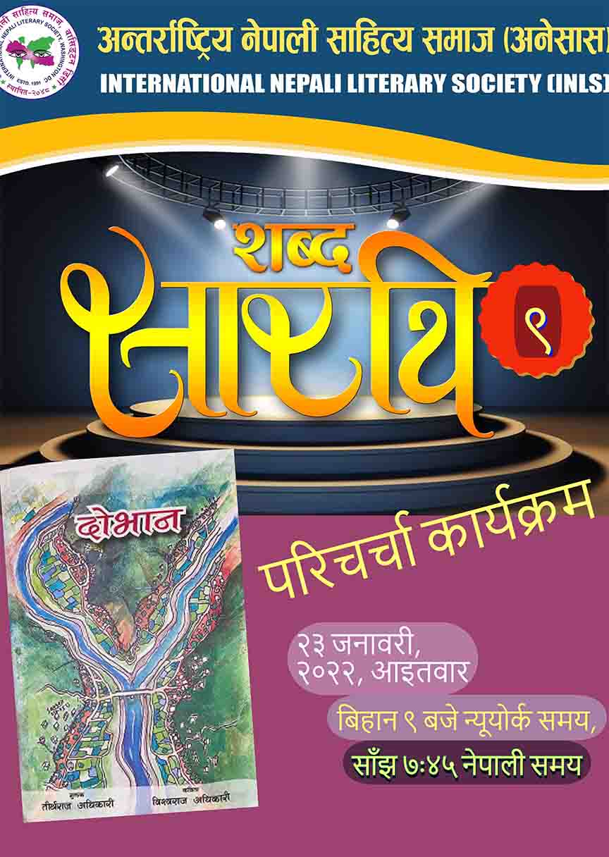 समाचारदाता, बोस्टन/अमेरिका : अन्तर्राष्ट्रिय नेपाली साहित्यको पाक्षिक साहित्यिक कार्यक्रम ‘अनेसास शब्द-सारथि’ मा साहित्यिक कृति ‘दोभान’को चर्चा गरिएको छ । आइतवार जूममा माध्यममा आयोजित उक्त कार्यक्रममा तीर्थराज अधिकारी र विश्वराज अधिकारीको संयुक्त उक्त कृतिको लोकार्पण र चर्चा गरिएको हो ।