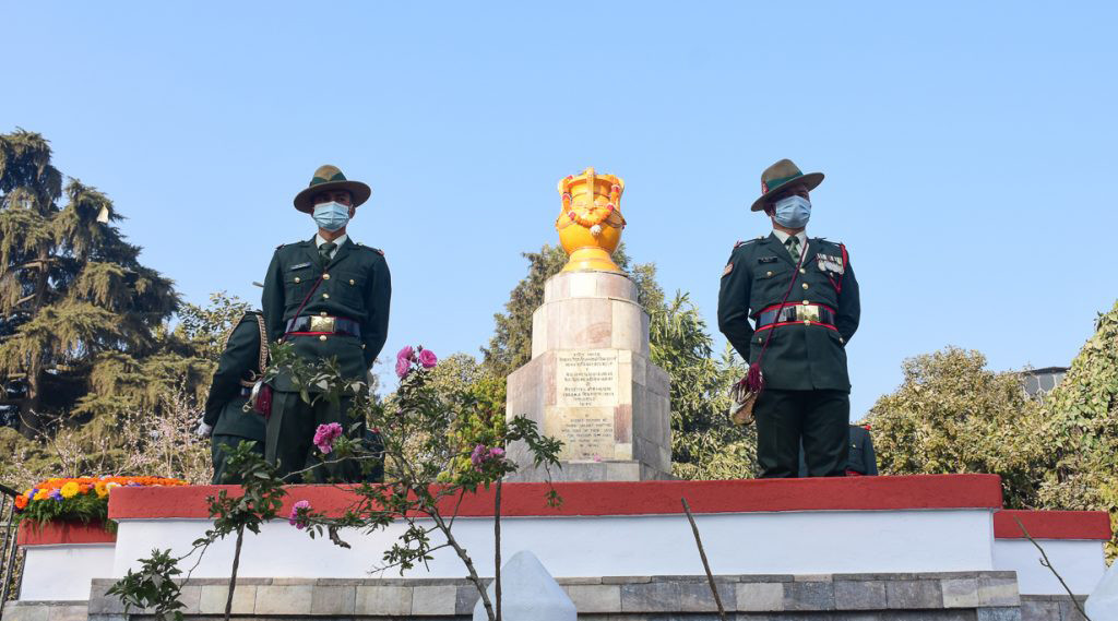 काठमाडौं, १६ माघ : शहीद दिवसको अवसरमा प्रधानमन्त्री शेरबहादुर देउवाले काठमाडौंको लैनचौरस्थित शहीद स्तम्भमा माल्यार्पण गरेका हुन् । काठमाडौं महानगरपालिकाले आयोजना गरेको कार्यक्रममा प्रधानमन्त्री, राजनीतिक दलका नेता, सरकारी कर्मचारी, सुरक्षाकर्मी लगायत सहभागी थिए ।
