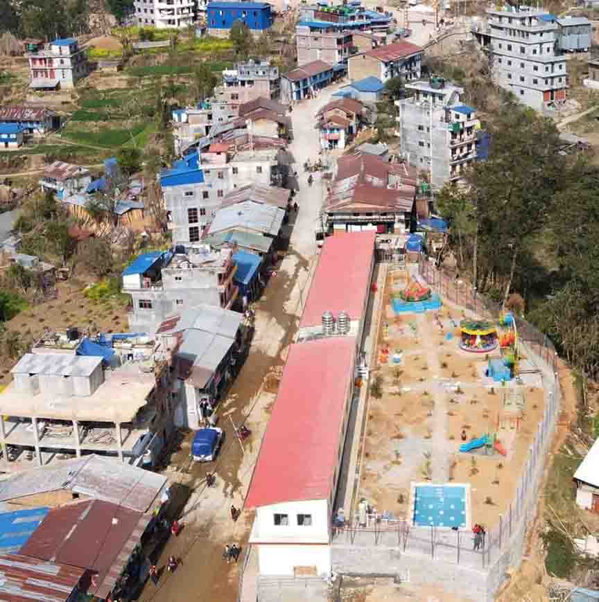 मन्त्रालयको रु दुई करोड ५७ लाख र नगरपालिकाको रु एक करोड ८० लाख ८४ हजार लगानीमा उमा–लामा–अनशुवी जेभीले सो कम्प्लेक्स तथा उद्यान निर्माण गरेको हो । यो जिल्लाकै पहिलो बाल उद्यान हो ।