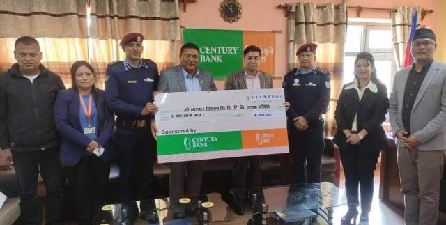 सो सहयोग रकम बैंकका वागमती प्रदेश प्रमुख दिपेन्द्र बाबु बिष्टले महानगरीय प्रहरी परिसर, भक्तपुरका प्रमुख शिवकुमार श्रेष्ठक।े विशेष उपस्थीतीमा परिसर कार्यलयमा भक्तपुर जिल्ला सि.सि.टि.भि.जडान समितिका कोषाध्यक्ष नविन प्रजापतीलाइ हस्तान्तरण गरे । उक्त कार्यक्रममा सेञ्चुरी बैंकका वागमती प्रदेश उपप्रमुख प्रचिता श्रेष्ठ, सुकुलढोका शाखाका प्रमुख सुकेश शाक्य र भक्तपुर शाखाका प्रमुख उषा खाणंको पनि उपस्थीती थियो । सेञ्चुरी बैंकले भक्तपुरमा तीन शाखामार्फत सेवा प्रदान गर्दै आएको छ ।