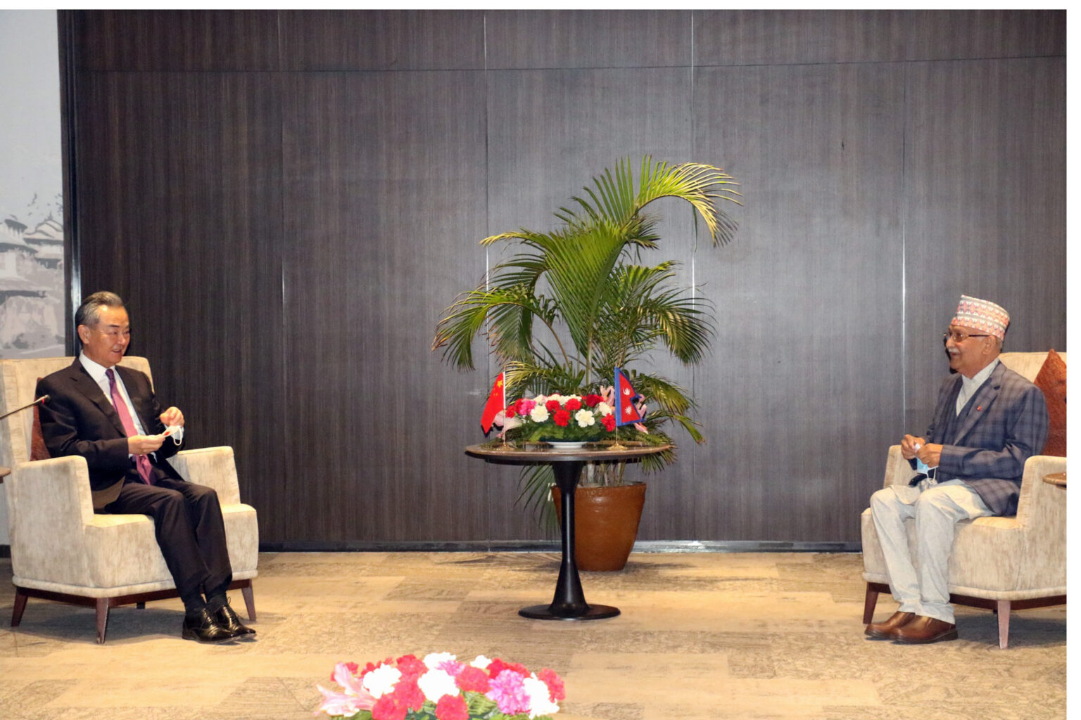 कोरोना कहरका समयमा चीन सरकारका तर्फबाट नेपाललाई उपलब्ध गराइएको सहयोगप्रति एमालेले धन्यवाद दिएको थियो । तातोपानी र रसुवागढी नाकाको नियमित सञ्चालनका लागि एमालेले चिनियाँ विदेशमन्त्री वाङलाई आग्रह गरेको थियो । एमालेले गरेको आग्रहलाई विदेशमन्त्री वाङले सकारात्मक रुपमा लिँदै नेपालको विकास र समृद्धिका लागि सहयोग गर्न आफूहरु तयार रहेको बताउनुभएको थियो ।