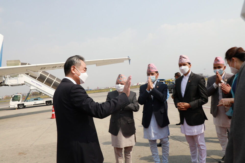 परराष्ट्रमन्त्री डा नारायण खड्काको मैत्रीपूर्ण निमन्त्रणामा नेपाल भ्रमणमा आएका विदेशमन्त्री वाङ १९ सदस्यीय प्रतिनिधिमण्डलको नेतृत्व गर्दै शुक्रबार यहाँ आइपुगेका थिए ।