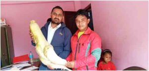 सिन्धुपाल्चोक : मेलम्ची– ९, ज्यामिरेका किसान अष्टमान तामाङको परिवारले फलाएको १० केजी ४०० ग्रामको मुला कृषि कार्यालय मेलम्चीमा प्रदर्शन गरिँदै । तस्वीर: देवराज सुवेदी (रासस)