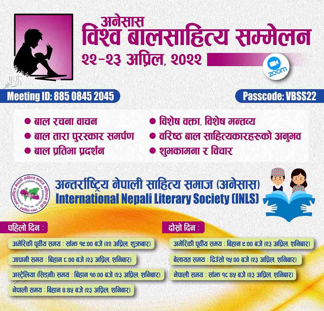 समाचारदाता : प्रवासमा जन्मिएका र हुर्किएका १८ बर्ष मुनिका भाइ बहिनीहरुलाई नेपाली भाषा, साहित्य, कलाका विविध आयाममा आकर्षण र प्रेरणा दिने उदेश्यले ‘अनेसास बालतारा’ पुरस्कारको स्थापना गरिएको छ ।