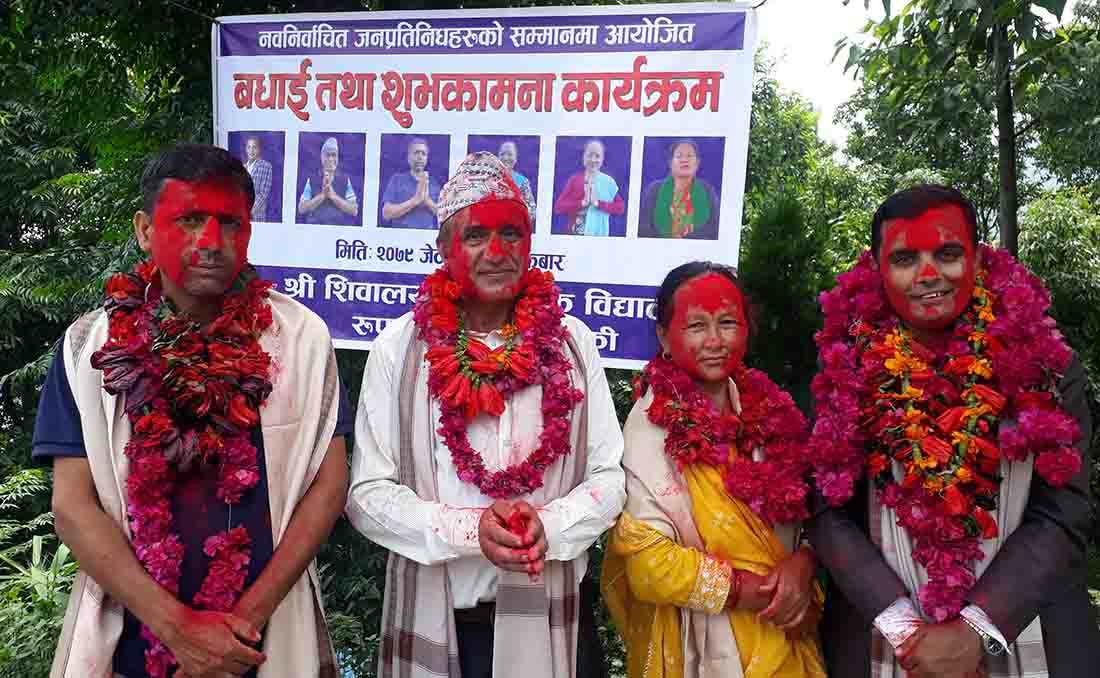 पोखरा : कास्कीको रूपा गाउँपालिका–२, थुम्कीस्थित शिवालय माध्यमिक विद्यालयले नवनिर्वाचित जनप्रतिनिधिहरूलाई शुक्रबार बधाई तथा शुभकामनासहित सम्मान गरेको छ ।