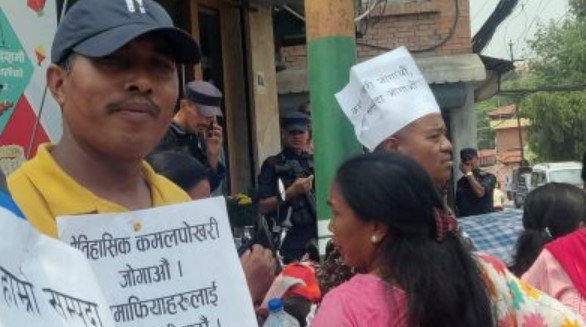 बिक्री भएको ऐतिहासिक कमल पोखरी फर्काउन अदालतमै धर्ना
