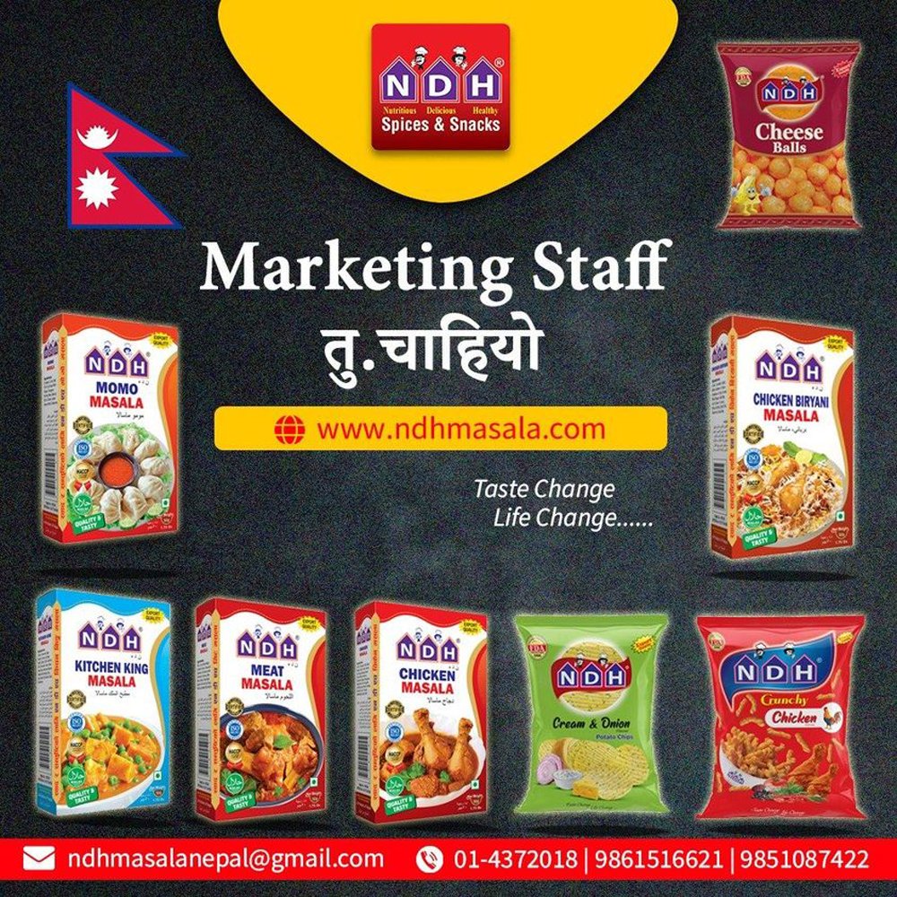 बीआइटीले उत्पादन र बजारीकरण गर्दै आएको एनडिएच ब्राण्डका मसलाका लागि मार्केटिङमा काम गर्न चाहने व्यक्तिहरुले कम्पनीमा सम्पर्क गर्न सक्ने बताइएको छ ।