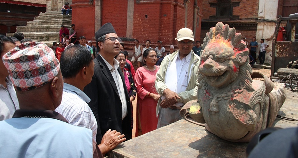 भक्तपुर : भक्तपुर नगरपालिका दरबारक्वायर परिसरको पूर्वी चोकको उत्तरतर्फ रहेको ऐतिहासिक शिलु महादेव मन्दिरमा ३७१ वर्ष पुरानो ‘बो’ सिंह अर्थात् उड्ने सिंह पुनः स्थापना गरिएको छ ।