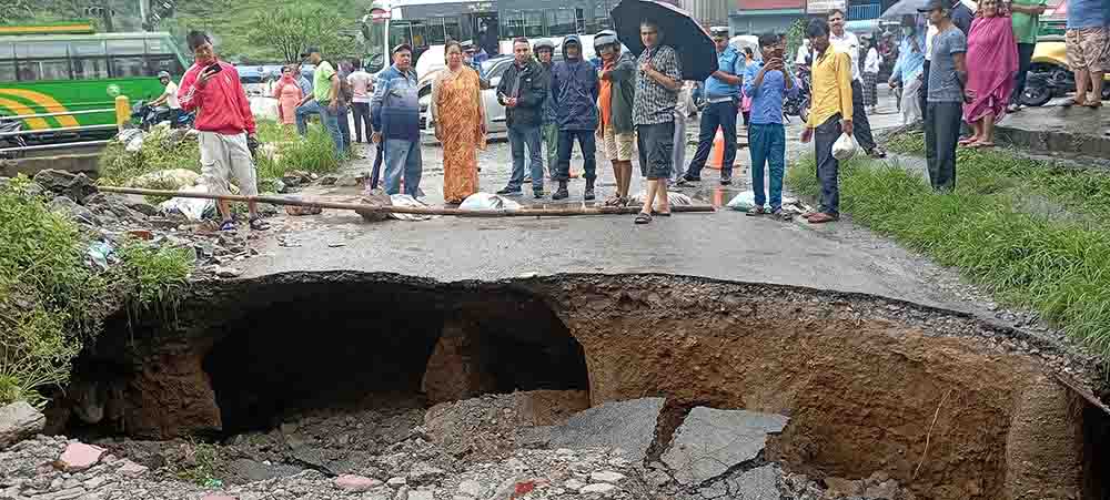 पोखरा : पोखरामा लगातारको वर्षासँगै परेसँगै सडक भासिएको छ ।
