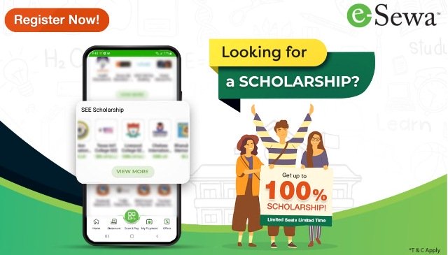काठमाडौं : नेपालको अग्रणी भुक्तानी सेवा प्रदायक कम्पनी इसेवाले एसईई परिक्षा उतिर्ण गरेका विद्यार्थीहरुलाई बम्पर अफर सार्वजनिक गरेको छ । यस अफर अन्तर्गत एक हजार जना विद्यार्थीले नेपालका विभिन्न कलेजमा शतप्रतिशत छात्रवृत्तिमा अध्ययन गर्न पाउनेछन् ।