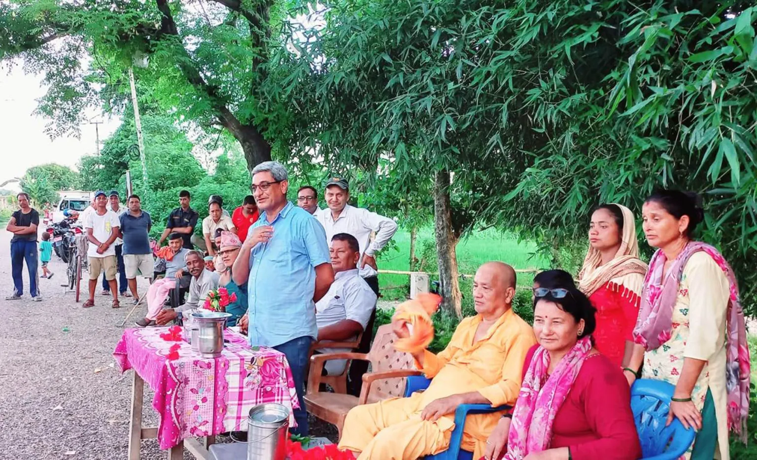 काठमाडौँ, २५ साउन : दोधरा चाँदनी नगरपालिका– ३ का बासिन्दासँग मङ्गलबार नेपाली काँग्रेसका केन्द्रीय सदस्य रमेश लेखक छलफल कार्यक्रममा । प्रतिनिधिसभा र प्रदेशसभाको निर्वाचनको मिति घोषणा भएसँगै नेता लेखकले आफ्नो निर्वाचन क्षेत्रका टोलटोलमा पुगेर स्थानीयसँग विकासबारे छलफल गरेका छन् । तस्बिरः राजेन्द्रप्रसाद पनेरु/रासस