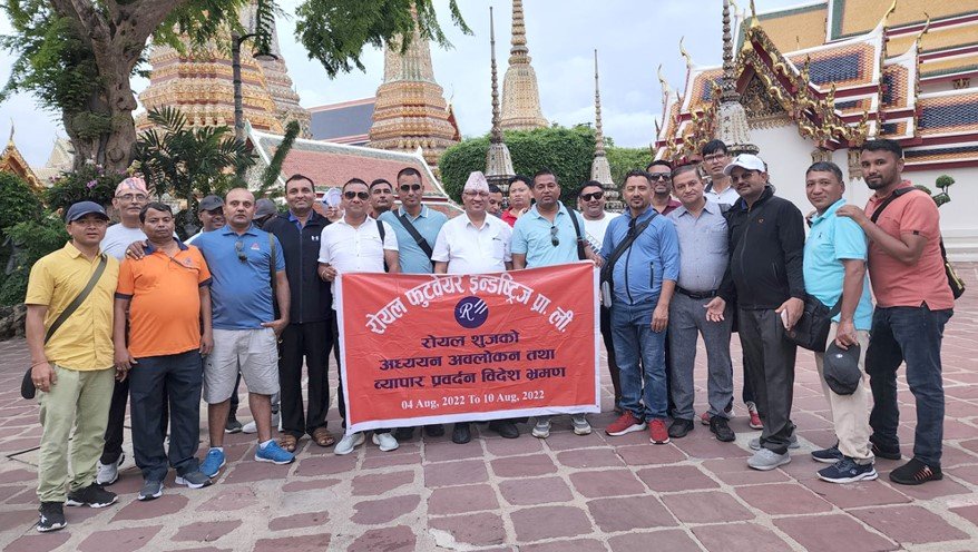 काठमाडौं : रोयल फुटवयर इण्डष्ट्रिज प्रा.लि को अध्ययन, अवलोकन एवं व्यापार प्रवर्द्धन भ्रमण कार्यक्रम सम्पन्न भएको छ । रोयल सुजका लागि देशभर भएका बिक्रेताहरुको सहभागितामा कार्यक्रम आयोजना गरिएको हो ।