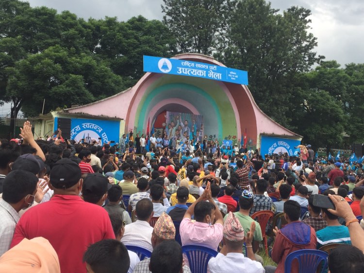 काठमाडौं, ११ भदौ : रवि लामिछानेले नेतृत्व गरेको पार्टी राष्ट्रिय स्वतन्त्र पार्टीले आज काठमाडौँको खुल्ला मञ्चमा उपत्यका भेला नाम दिएर आमसभाको आयोजना गरेको छ । सभामा उपस्थितमध्येबाटै केही भर्खरका विद्यार्थीदेखि बृद्धहरुलाई पनि मन्तव्य राख्ने अवशर दिईएको थियो भने कृषि विशेषज्ञ मदन राई लगायत केही अन्य व्यक्तिले पनि बोलेका थिए । त्यस्तै राष्ट्रिय स्वतन्त्र पार्टीका केन्द्रीय नेताहरुले पनि आफ्नो मन्तव्य राखेका थिए । मन्तव्यको क्रममा राष्ट्रिय स्वतन्त्र पार्टीका अध्यक्ष रवि लामिछानेले कही ठूला पार्टीका नेताहरुको नामै लिएर भने, अव यी बाहरुलाई जसरी पनि हराउनु पर्छ ।