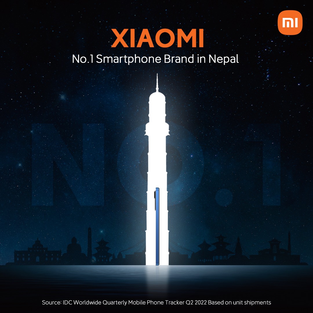 काठमाडौं : ग्लोबल टेक्नोलोजी लिडर शाओमीले आज मार्केट रिसर्च फर्म आइडिसीको विश्वव्यापी मोबाइल फोन ट्रयाकरको दोश्रो त्रैमासिक २०२२ को रिलीज अनुसार आफू नेपालको नम्बर एक स्मार्टफोन कम्पनी बनेको घोषणा गरेको छ ।
