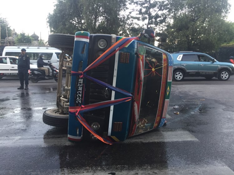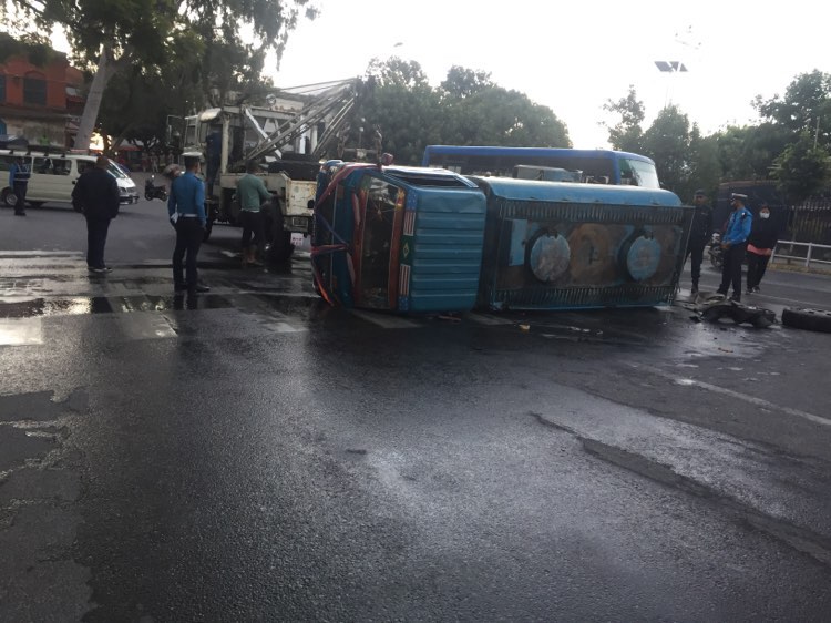 काठमाडौँको शहीदगेटमा बा ३ ख ८८२८ नं को पानी ट्याङ्कर दुर्घटना