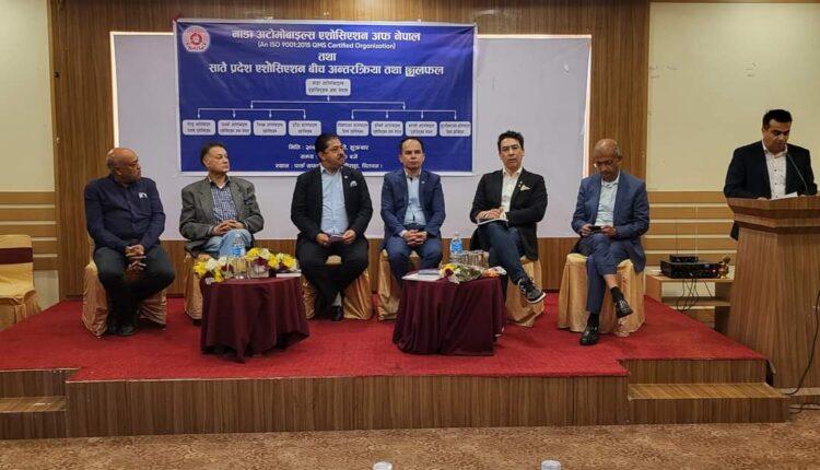कार्यक्रममा नाडाका १ नं. प्रदेश अन्तर्गत रहेको मोरङ अटोमोवाइल डिलर्श एशोसिएशनका अध्यक्ष सञ्जयकुमार श्रेष्ठ, मधेष प्रदेश अन्र्तगत रहेको जानकी अटोमोवाइल्स एशोसिएशन अफ नेपालका अध्यक्ष तेजनारायण साह, बागमती प्रदेश अन्र्तगत रहेको चितवन अटोमोवाइल्स एशोसिएशनका अध्यक्ष कृष्णप्रसाद भण्डारी तथा हेटौडा अटोमोवाइल्स एशोसिएशनका अध्यक्ष दामोदरप्रसाद अटल, गण्डकी प्रदेश अन्र्तगत रहेको पश्चिमाञ्चल अटोमोवाइल डिलर्श एशोसिएशनका अध्यक्ष कृष्णप्रसाद श्रेष्ठ, लुम्बिनी प्रदेशअन्र्तगत रहेको लुम्बिनी अटोमोवाइल्स एशोसिएशन अफ नेपालका अध्यक्ष गणेश भट्टराई, कर्णाली प्रदेश अन्र्तगत रहेको कर्णाली अटोमोवाइल्स एशोसिएशन नेपालका अध्यक्ष भद्र भण्डारी र सुदूरपश्चिम प्रदेश अन्र्तगत रहेको सुदुर पश्चिम अटोमोवाइल डिलर्श एशोसिएशनका अध्यक्ष पुष्करराज ओझाले आन्दोलनका सम्बन्धमा आ-आफनो धारणा व्यक्त गरेका थिए ।