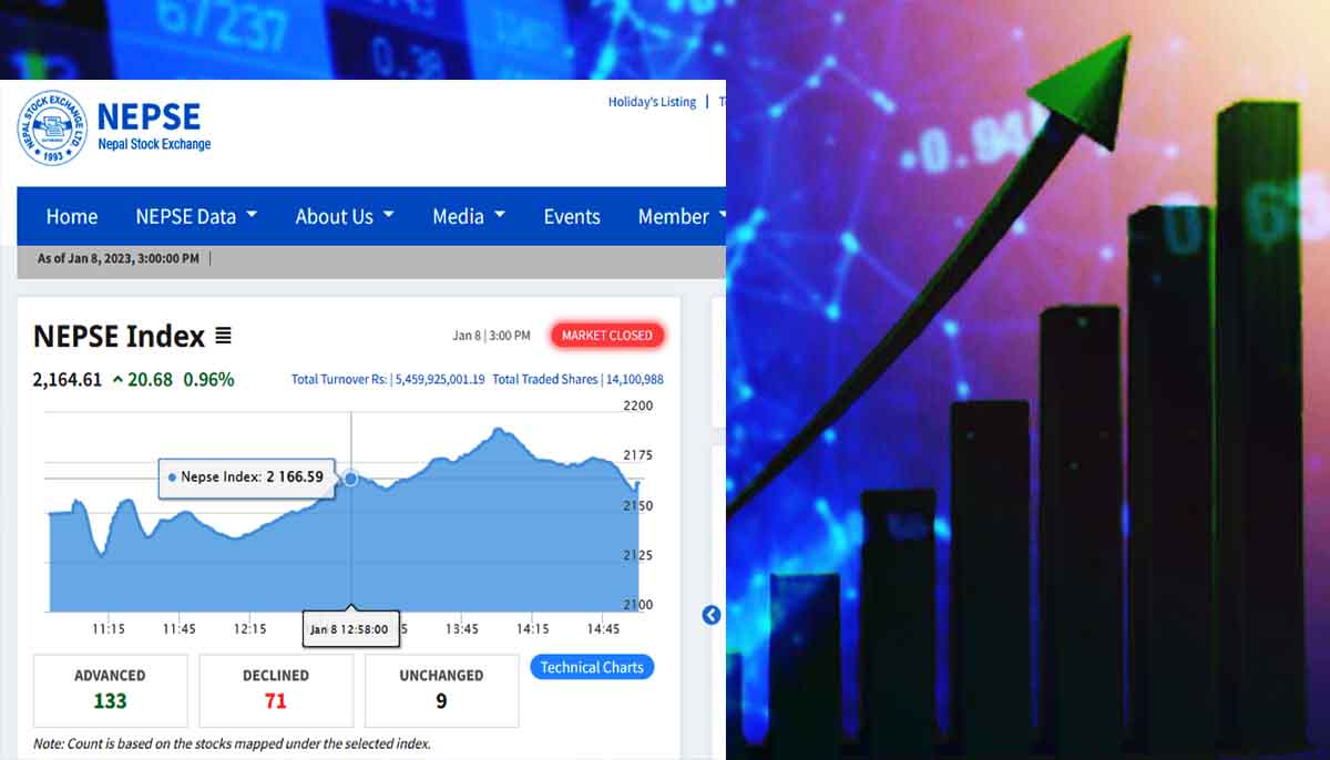 आज नेप्से परिसूचक २०.६८ अंकले वृद्धि भई २१६४.६१ विन्दुमा पुगेको छ ।