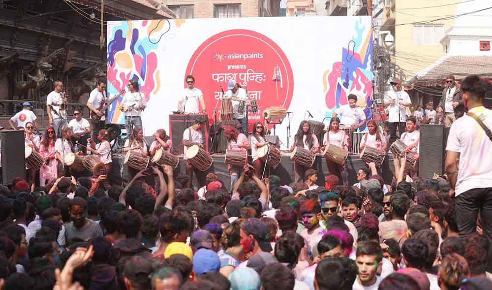 Kathmandu: Asian Paints Nepal, one of the largest paint companies in Nepal, celebrated the festival of colors, Holi, in association with KMC Ward No. 24 and Kutumba Band on March 6th, at Indra Chowk, Kathmandu. The event was aimed to uplift and showcase the Newa culture and community through the cultural band, Kutumba.