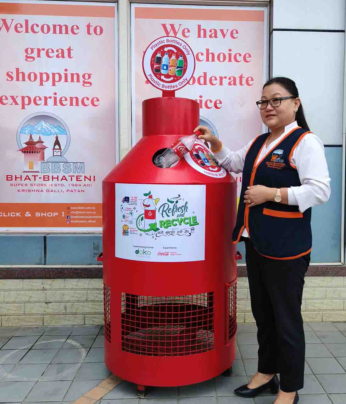 बोटलर्स नेपाल लिमिटेडका प्रबन्ध निर्देशक दीपक सेन्थिलले भन्नुभयो, “कोका–कोलाले वर्ल्ड विदाउट वेष्टको विश्वव्यापी प्रतिबद्धताका साथ विश्वभर विभिन्न रिसाइक्लिङ्ग र पुनः प्रयोग सम्बन्धि परियोजनाहरु सञ्चालन गरिरहेको छ । हामीले सन् २०३०सम्ममा विश्वभरि आफ्नो प्याकेजिङको शतप्रतिशत बराबरको अन्य खाली बोतल र प्याकेजिङहरु सङ्कलन र पुनः प्रयोग गर्ने प्रतिबद्धता गरेको छौँ । यसै दिगोपन प्रतिको प्रतिबद्धताको एक भागको रूपमा हामीले काठमाडौं उपत्यका र भरतपुरका धेरै जनघनत्व हुने स्थानहरूमा एभ्त् रिसाइक्लिङ बिनहरू राखेका छौं ।”