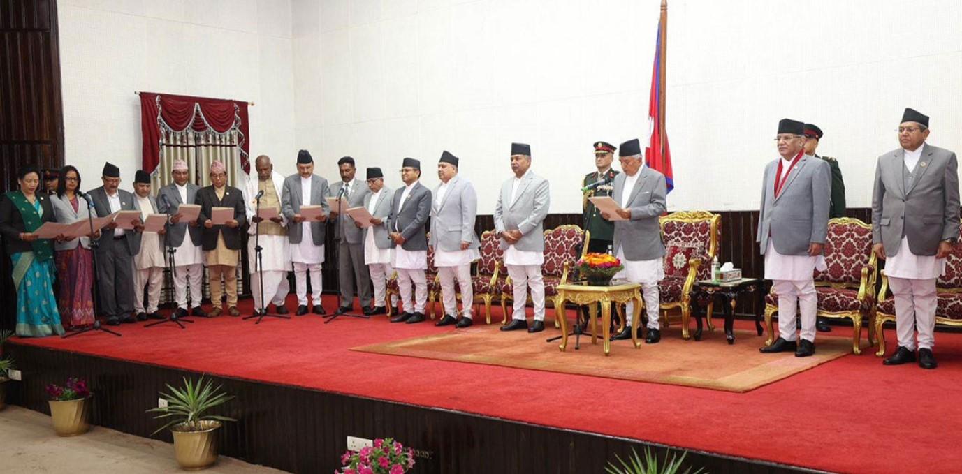 राष्ट्रपति भवन शीतलनिवासमा भएको समारोहमा राष्ट्रपति रामचन्द्र पौडेलले नवनियुक्त मन्त्रीहरुलाई पद तथा गोपनीयताको शपथ गराएका हुन् ।