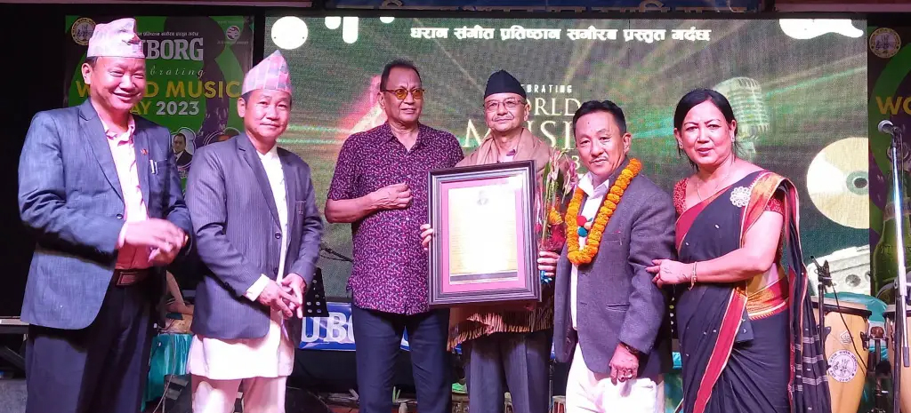 धरान / धरान संगीत प्रतिष्ठानले हरेक वर्ष जुन २१ तारिखमा मनाईने विश्व संगीत दिवसको अवसरमा गर्दै आएको बिशेष सांगीतिक कार्यक्रमलाई दुई दिन पछाडी असार ८ गते शुक्रबार धरानको चुम्लुङ्ग हिमको हलमा वरिष्ठ गायिका लोचन भट्टराई र गायिका हर्षु राईलाई सम्मान तथा वरिष्ठ गीतकार तथा संगितकार श्याम तमोटलाई अभिनन्दन गरेको छ।