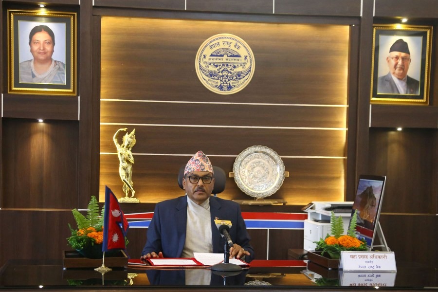 काठमाडौं : नेपाल राष्ट्र बैंकका गभर्नर महाप्रसाद अधिकारीले विद्यमान मद्रास्फीतिलाई प्रभाव पार्ने विभिन्न पक्षको विश्लेषण, शोधनान्तर स्थिति र निजी क्षेत्रतर्फ जाने बैंक कर्जाको वृद्धिदरलाई दृष्टिगत गरी मौद्रिक नीतिको समीक्षा गरिएको बताएका छन् ।