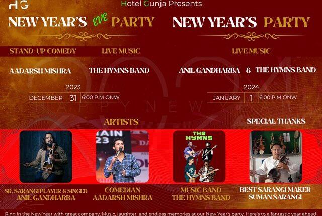 Bardibash : Hotel Gunja, renowned for its exquisite hospitality and luxurious ambiance, invites you to ring in the New Year with an unforgettable celebration featuring top-notch entertainment. The New Year’s Eve extravaganza promises to be a night of laughter, music, and thrilling performances that will leave guests with cherished memories.