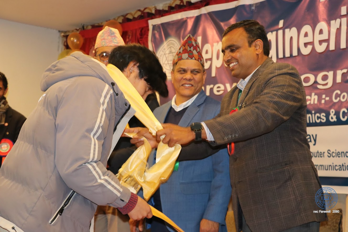 विदाई कार्यक्रमका प्रमुख अतिथी नेपाल इन्जिनियरिङ काउन्सिलका अध्यक्ष प्रा.डा. पदमबहादुर शाहीले व्यवसायीक क्षेत्रमा प्रवेश गर्न तयार नवइन्जिनियरहरुलाई पेशागत मर्यादामा रहेर काम गर्न सुझाब दिए । नेपालमा दक्ष इन्जिनियरहरुको खाँचो रहेको औल्याउँदै अध्यक्ष शाहीले इथिक्समा बसेर काम गर्दा सफलता प्राप्त हुने बताए । ‘तपाईहरुले जसरी कलेजमा माया पाउनु भएको थियो, ब्यवसायिक जीवनमा त्यो वातावरण पाउन पनि सक्नुहुन्छ नसक्नु पनि हुन्छ । इन्जिनियरिङ पेशामा अपडेट भएर इथिक्समा रहेर काम गर्नु होला ।’ ब्यवसायिक जीवनमा प्रवेश गरेपछि प्रत्येक दिन परीक्षा दिइरहनु पर्ने भन्दै अध्यक्ष शाहीले इन्जिनियरिङमा अनुभव र सीप नै महत्वपूर्ण भएकोले अरुभन्दा अब्बल हुन अनुशासित, मेहनती बन्न जरुरी रहेको उल्लेख गरे ।