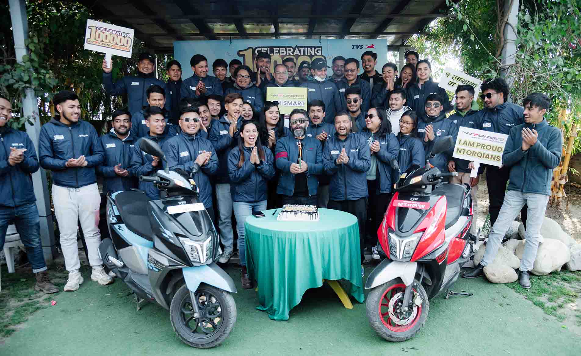 Kathmandu: Jagdamba Motors, the sole authorized distributor of TVS scooters in Nepal, has successfully completed celebratory NOG ride commemorating the milestone achievement of selling 100,000 NTORQ scooters.
