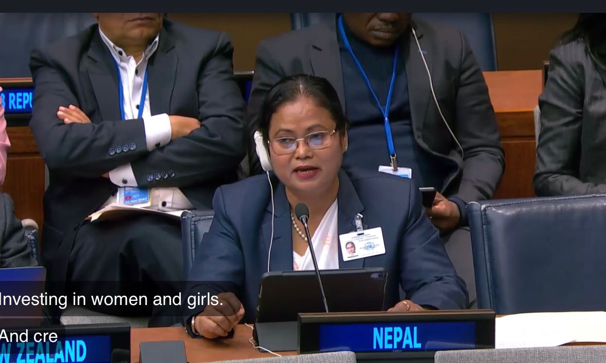 अमेरिकाको न्यूयोर्कमा जारी युएन वुमनको ‘द कमिसन अन दि स्टाटस अफ वुमन’ सम्मेलनमा नेपालको प्रतिनिधित्व गर्दै मन्त्री चौधरीले महिलाले विश्वको आधा जनसंख्याको आधा सम्भावना बोकेको भएतापनि विश्वव्यापी लैङ्गिक समानता हासिल गर्न चुनौतिहरु रहेको बताउनु भयो । ‘सेक्युरिटी जनरलको रिपोर्टले काम गर्ने समय, रोजगारी, वित्तीय समावेशीकरण, वित्तीय स्रोतमा पहुँच र सामाजिक सुरक्षामा महिला र पुरुषबीचको ठूलो अन्तर देखाउँछ । सामाजिक सुरक्षा, समावेशी दिगो विकास लक्ष्य हासिल गर्न लैङ्गिक समानता, महिला सशक्तीकरण महत्त्वपूर्ण रहेको छ ।’ नेपालले महिला र युवतीहरुको अधिकार र मुद्दालाई सधैं उच्च प्राथमिकतामा राखेको भन्दै चौधरीले भन्नुभयो ।