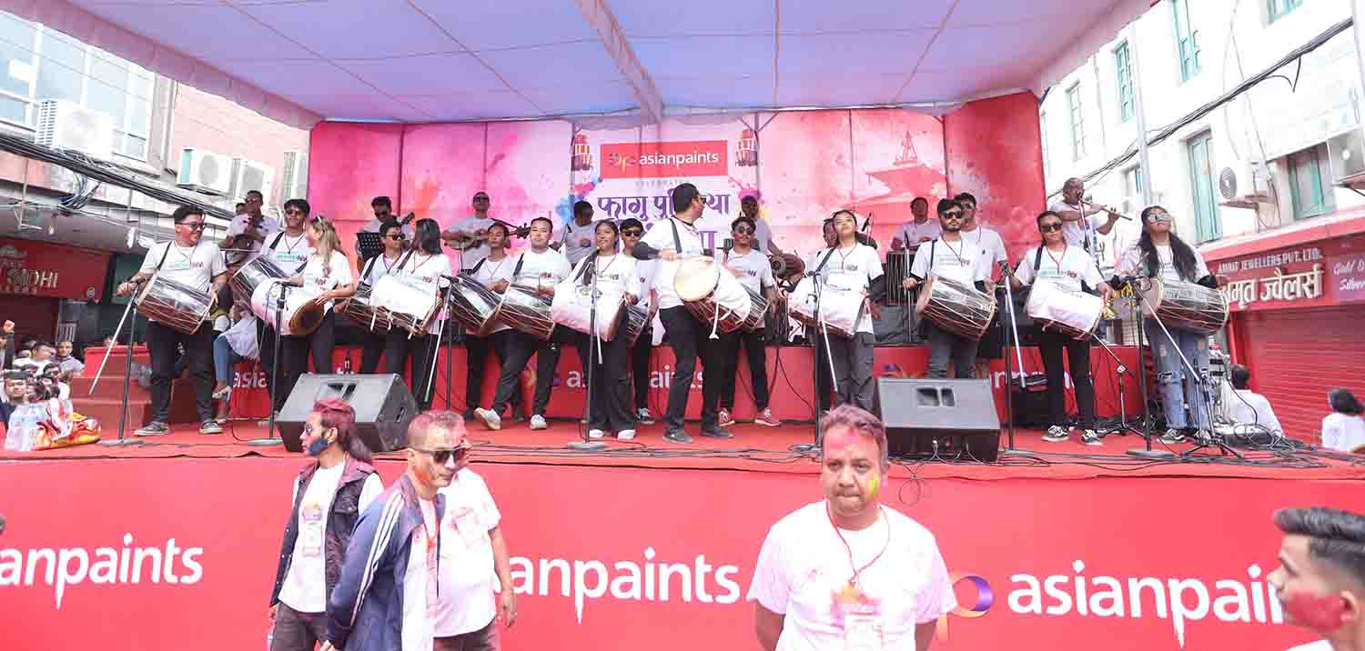 Kathmandu : Asian Paints Nepal, one of the largest paint companies in Nepal, has celebrated Holi in collaboration with KMC Ward No. 24 and Kutumba Band at Indra Chowk, Kathmandu. The event aimed to uplift and showcase the cultural richness of Kathmandu.
