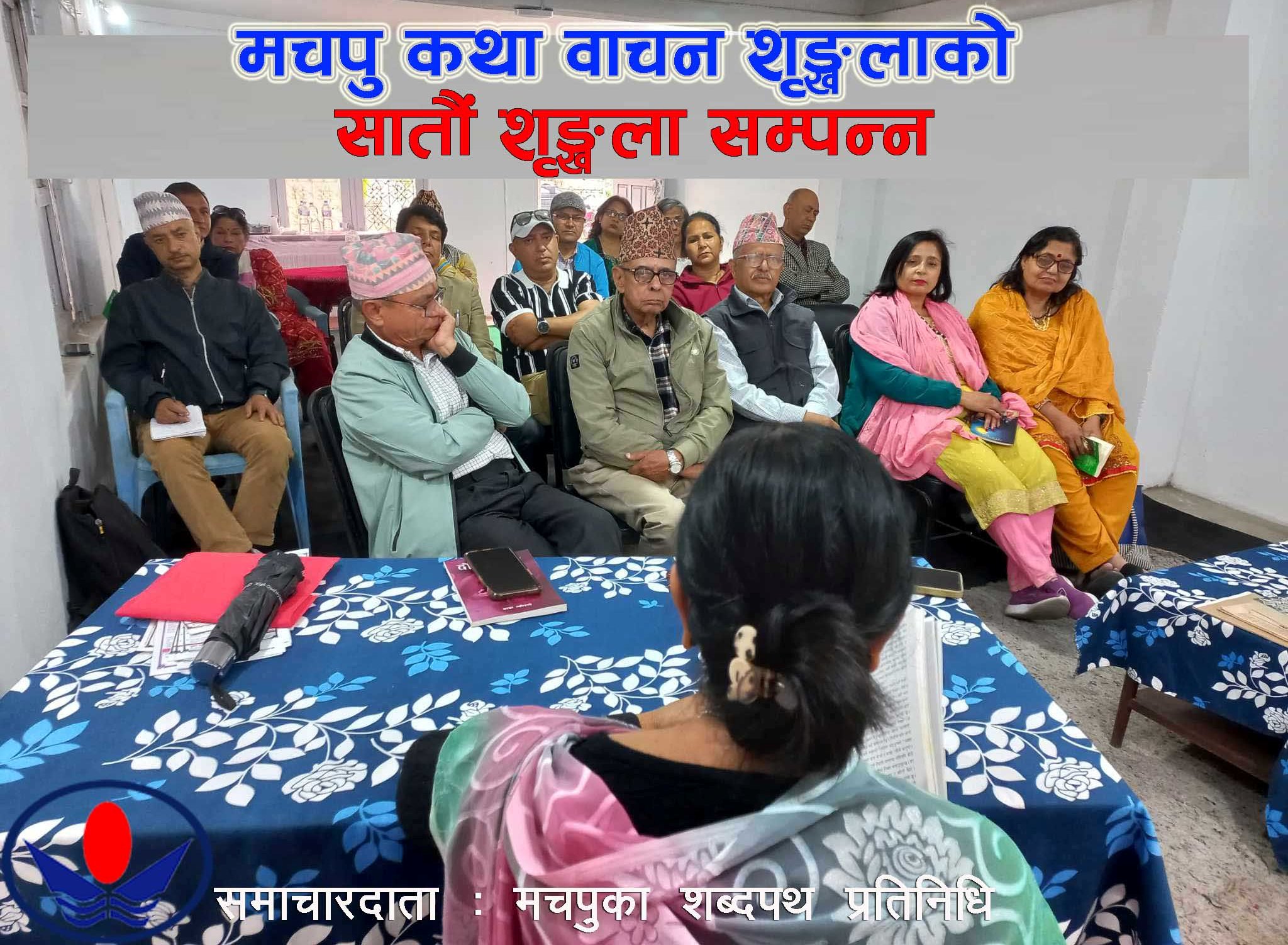 काठमाडौँ : ‘मचपु’ कथा वाचन शृङ्खलाको सातौं शृङ्खला गत चैत ३० गते काठमाडौंको घट्टेकुलोमा सम्पन्न भएको छ । शृङ्खलाको शुरुआत हालसालै दिवङ्गत हुनुभएका वरिष्ठ कथाकार परशु प्रधानप्रति श्रद्धाञ्जली अर्पण गर्दै एकमिनेट मौन धारण गरेर कार्यक्रमको गरिएको थियो ।