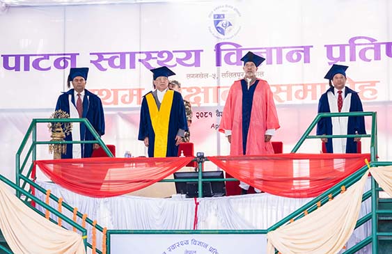 काठमाडौं : पाटन स्वास्थ्य तथा विज्ञान प्रतिष्ठानको पहिलो दीक्षान्त समारोह बुधबार ‘नेपाल आर्मी स्पोर्ट्स कम्प्लेक्स’को प्राङ्गणमा सम्पन्न भएको छ । उक्त समारोहमा विभिन्न विषयमा स्नातक तथा स्नातकोत्तर उत्तीर्ण गरेका कूल ४८५ विद्यार्थीहरुलाई दिक्षीत गरिएको थियो । दिक्षीत हुनेमा एमबीबीएस, एमएस, एडी, एमपीएच, बीएससी, बीएनएस जस्ता विषय उत्तीर्ण गरेका विद्यार्थीहरु थिए ।