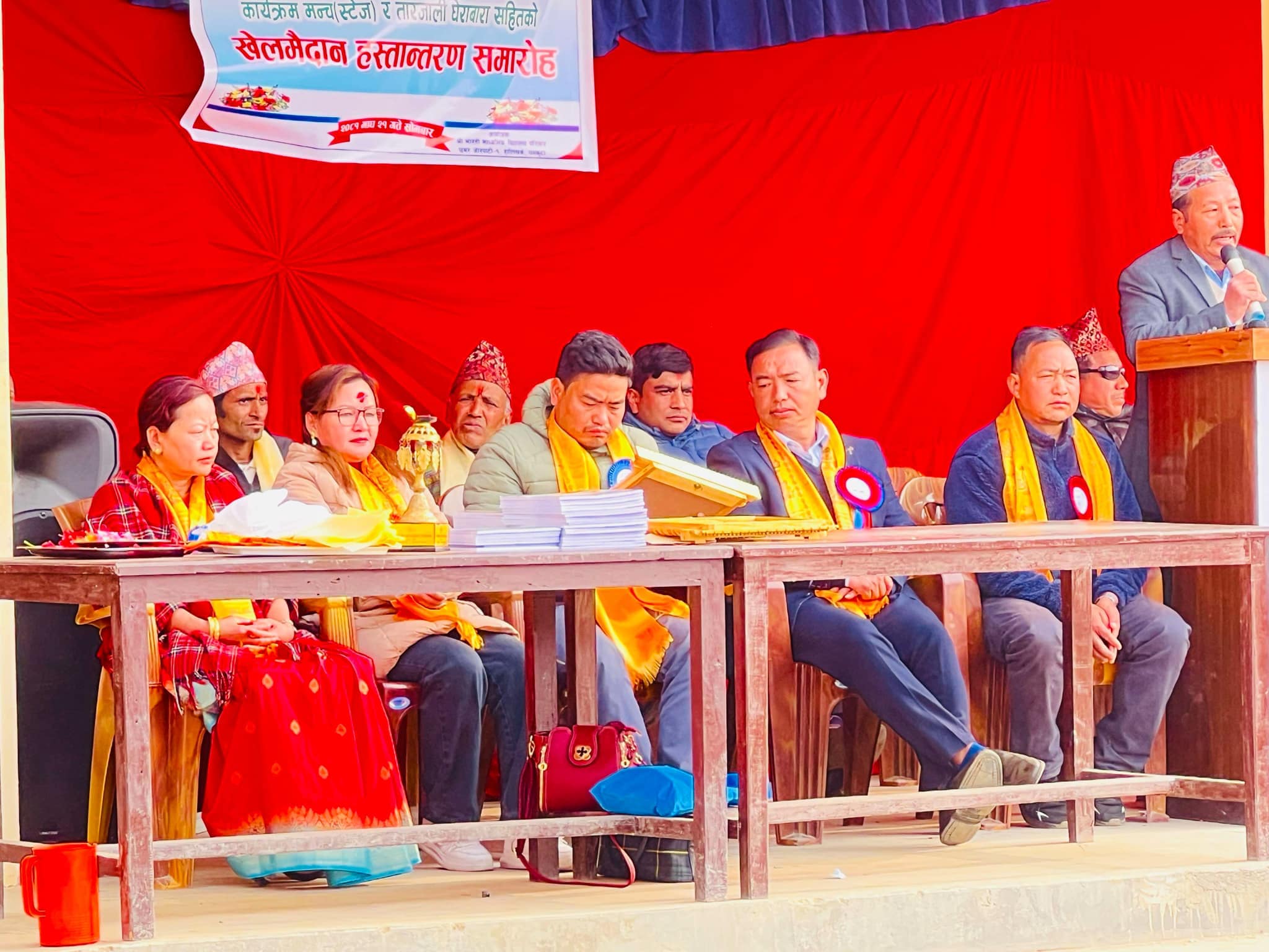 सरस्वती पुजाको दिन आयोजित सो खेलमैदान हस्तान्तरण समारोहमा विद्यार्थी नानीहरुले करिब दर्जन भन्दा बढि गीत र नृत्य प्रस्तुत गरेका थिए । सो कार्यक्रमको सभापतित्व होम कुमार लिम्बुले गरेका थिए भने संचालन शिक्षक प्रेम कार्कीले गरेका थिए ।