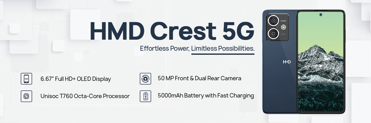 एचएमडी क्रेस्ट मिडनाइट ब्लू रंगमा रु. १८,९९९ नेपालभर नजिकैका मोबाइल पसलहरुमा खरिदका लागि उपलब्ध हुनेछ ।
